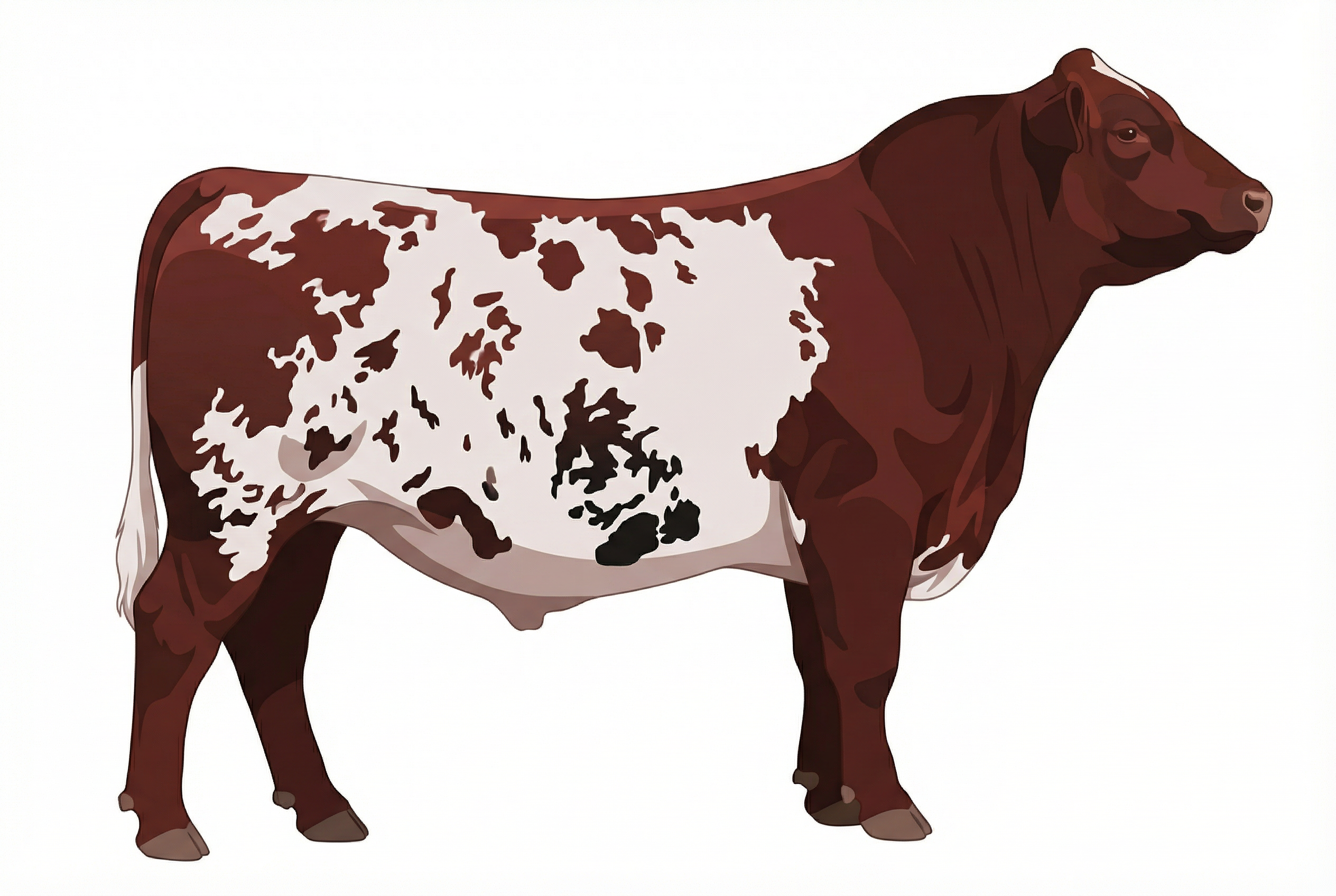 Cattle Color Images Added color image: Red, Roan Fullblood Shorthorn bull (polled) View