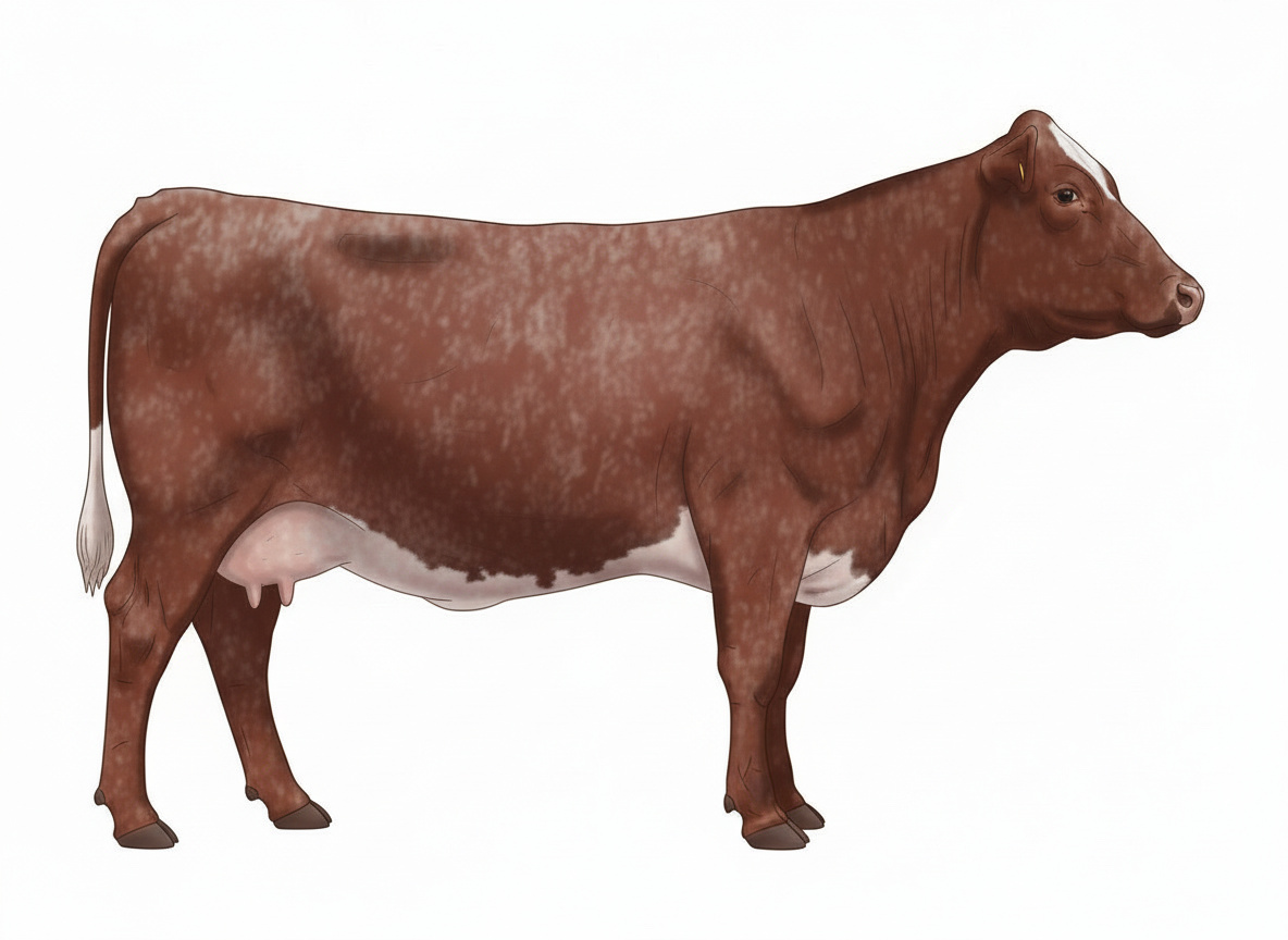 Cattle Color Images Added color image: Red, Roan Fullblood Shorthorn cow (polled) View