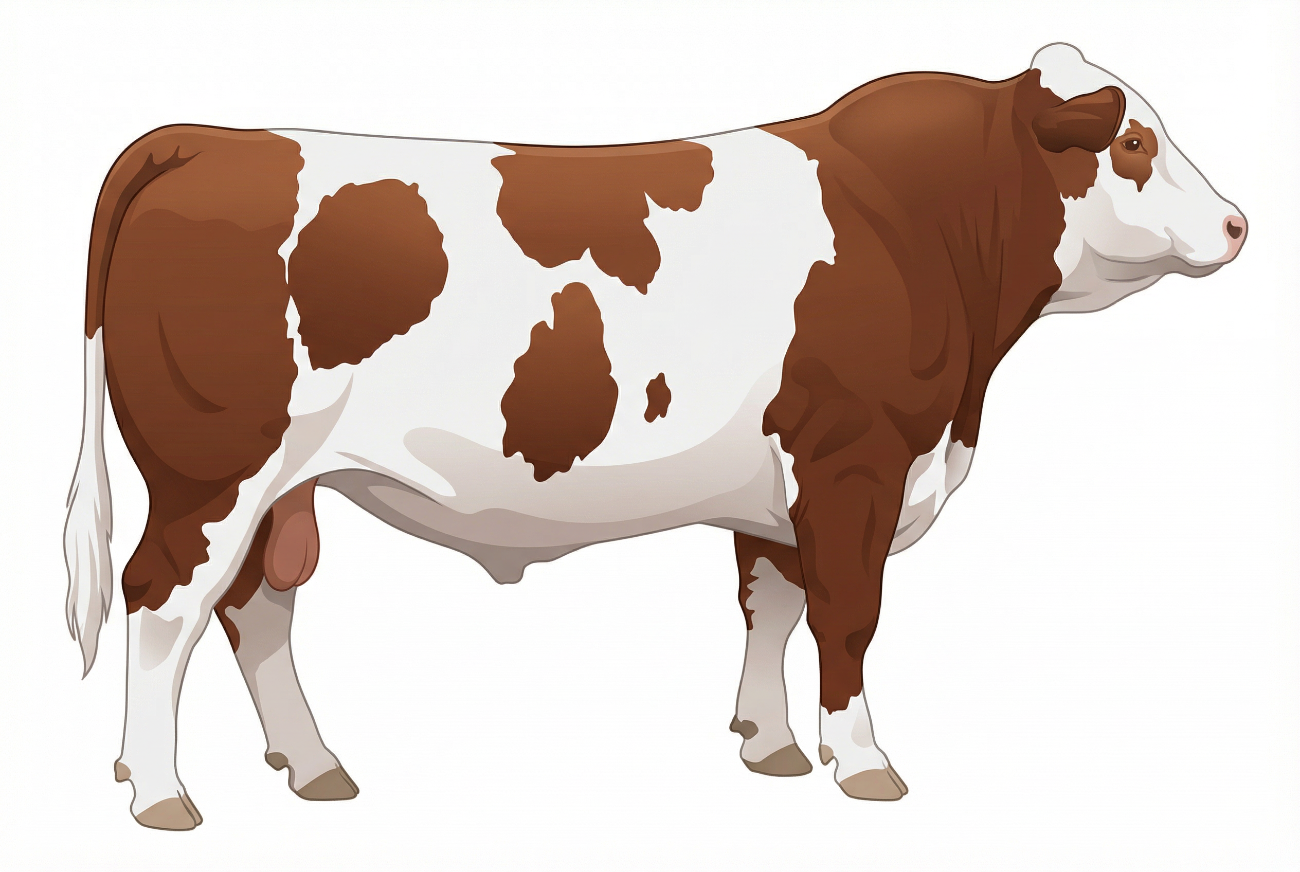Cattle Color Images Added color image: Red, Light whiteface, Light piebald Fullblood Simmental cow (polled) View